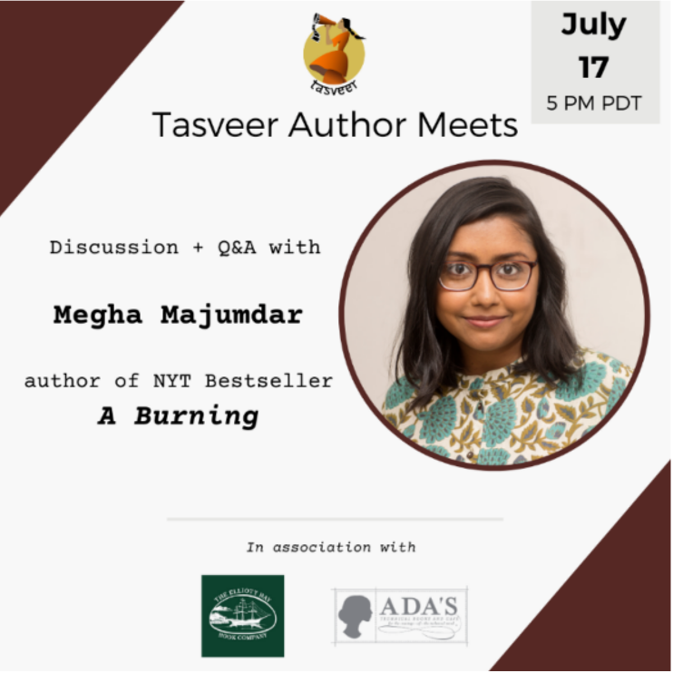 Tasveer Author Meets with Megha Majumdar Bibliophiles, listen up! We're bringing Megha Majumdar, New York Times bestselling author of "A Burning", for our next Tasveer Author Meets event on July 17th 5:00 PM PDT. Set in Kolkata,