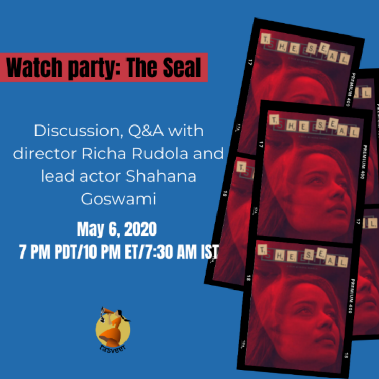 Tasveer Reels presents 'The Seal' Watch Party Mark your calendars for Wednesday May 6th. We'll watch the film The Seal directed by Richa Rudola, starring Shahana Goswami in the lead role. The watch party will be