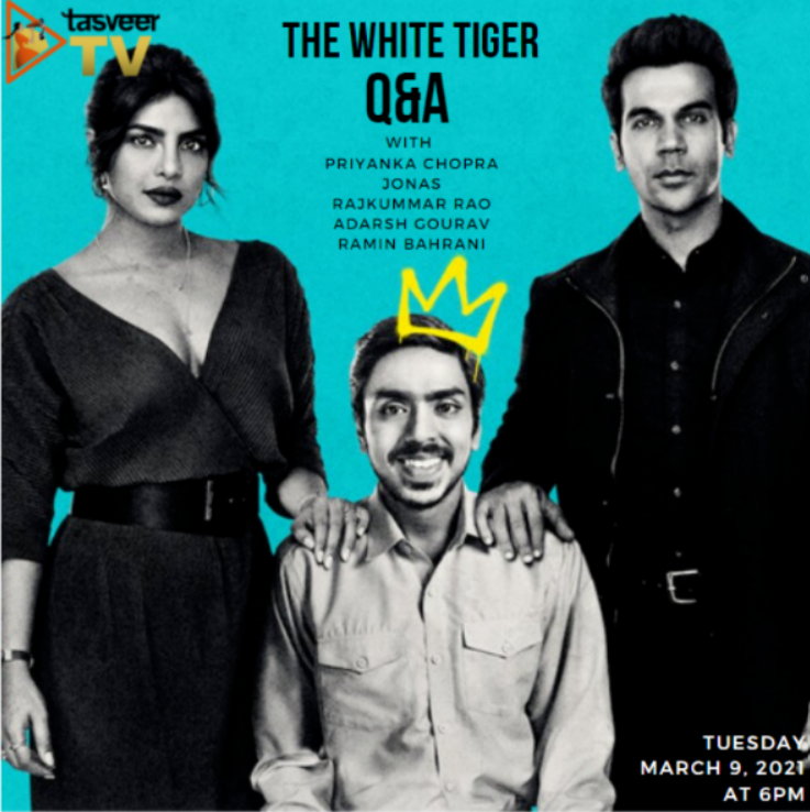 Exclusive Q&A: White Tiger TasveerTV has partnered up with Netflix to stream the Q&A hosted by Hasan Minhaj, for White Tiger starring: Priyanka Chopra Jonas, Rajkummar Rao, Adarsh Gourav, and Dir. Ramin Bahrani!! Join us!